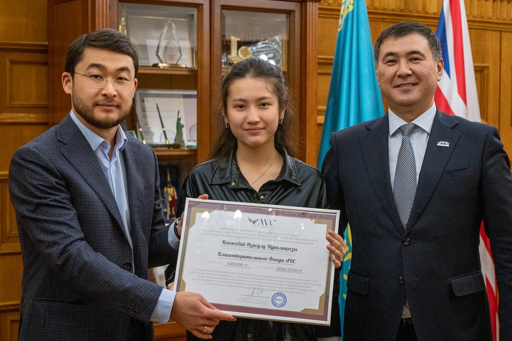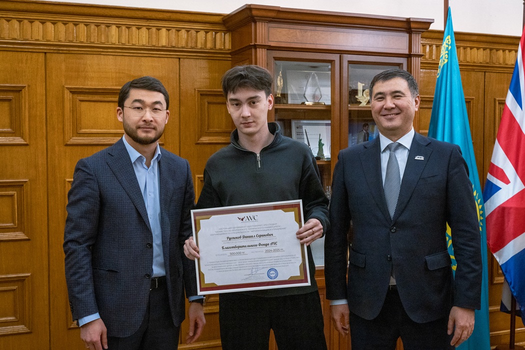 В рамках стратегического партнерства с Казахстанско-Британским техническим университетом (КБТУ) Фонд AVC учредил программу именных стипендий. На основе комплексной оценки, включающей академическую успеваемость, научные достижения и мотивационные эссе, было отобрано 5 лучших студентов, обучающихся по специальностям «Автоматизация и управление» и «Химическая технология».